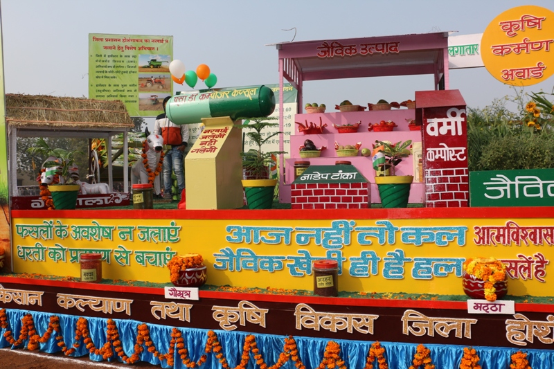 विभिन्न विभागो ने किया खूबसूरत झांकियो का प्रदर्शन रिपब्लिक टुडे,होशंगबाद। पुलिस परेड ग्राउण्ड में विभिन्न विभागो ने अपने विभाग की योजनाओ व विकास से संबंधित झांकियो का प्रदर्शन किया। इनमें कृषि विभाग द्वारा प्रस्तुत आत्म निर्भर मध्यप्रदेश की परिकल्पना को साकार करती झांकी को प्रथम, लोक स्वास्थ्य यांत्रिकी विभाग द्वारा जल जीवन मिशन हर घर में नल से जल झांकी को द्वितीय एवं वन विभाग होशंगाबाद द्वारा वनो के संरक्षण संवर्धन तथा साम्य पूर्ण लाभ विभाजन में हमारी हर समस्या का निदान निहित है को दर्शाती झांकी को तृतीय पुरस्कार प्राप्त हुआ। इसके अलावा विभिन्न विभागों द्वारा प्रदर्शित झांकियो की भी अतिथियों द्वारा सराहना की गई।