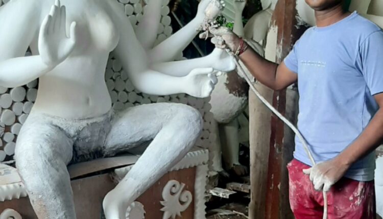 देवी प्रतिमाओं को फाइनल टच देने में जुटे मूर्तिकार