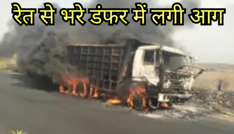 रेत से भरे डंफर में लगी आग,जल कर हुआ खाक